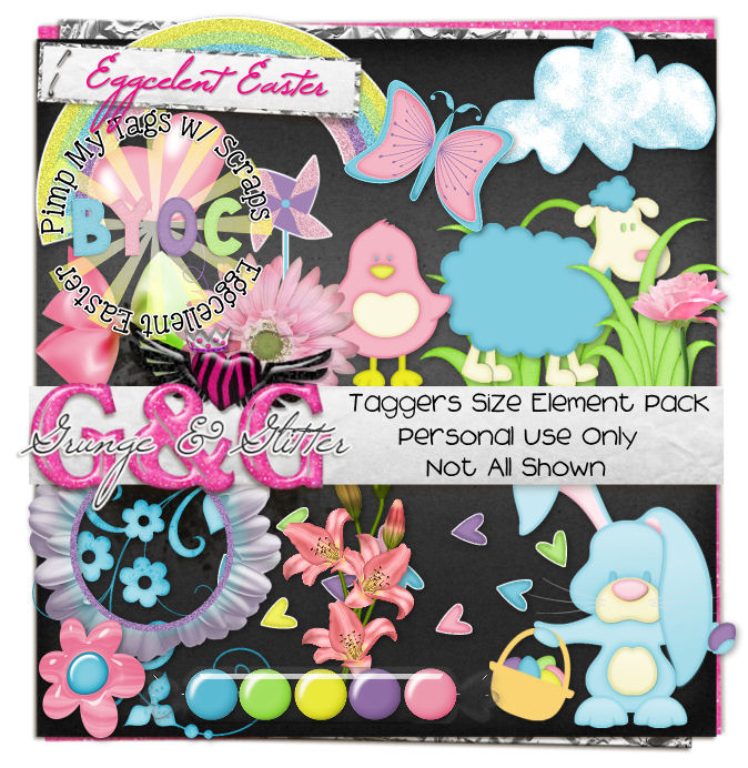 The designer's at Pimp My Tags w/ Scraps have come together to bring you another amazing, high quality and unique product! We have created Eggcelent Easter, A Build Your Own Collab! You choose from 20+ different products from all the designers at PMTw/S to create the Collab kit YOU WANT! You choose from paper packs, element packs, clusters and cluster frames, word art, alpha, glitter sheets and or PS Styles and even some CU products matching the theme that you can use to create your own designs.